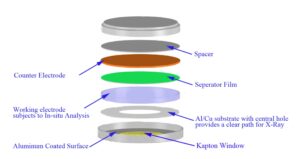 EQ-CR2032-Kapton are special CR-2032 coin cell cases with 10mm Kapton windows (5 set/pack). The window is designed for in-situ X-Ray analysis of battery material phase variations during charging and discharging.