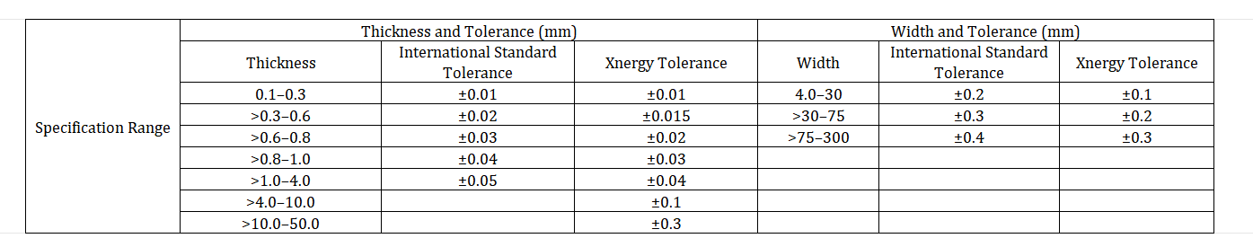 Thickness (0.02mm–50mm) × Width (4mm–400mm).
